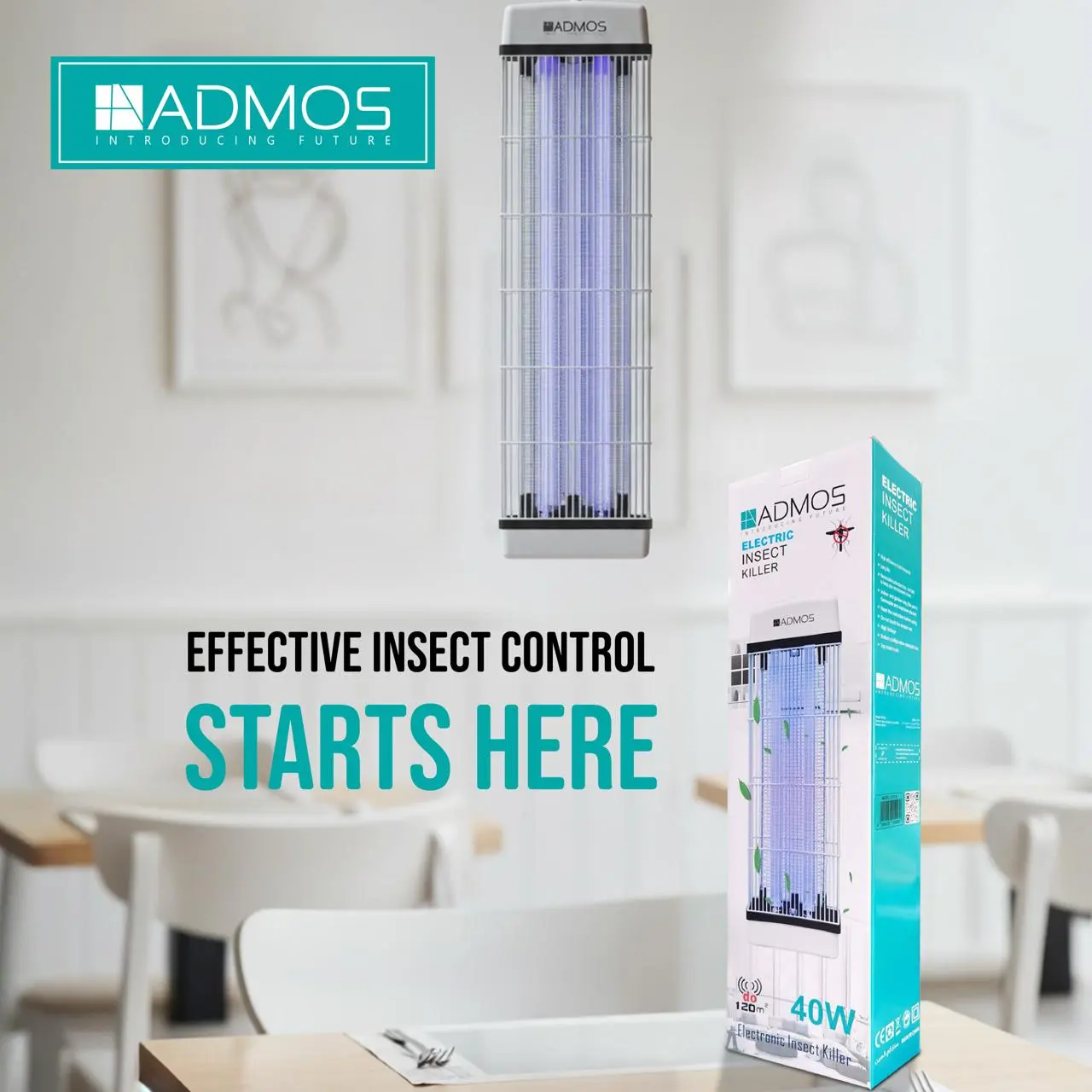 Whether it’s your home, restaurant, office, café, or commercial space, the ADMOS insect killer provides safe, efficient, and eco-friendly insect control. The powerful UV light draws insects toward the device, where a high-voltage electric grid instantly eliminates them, ensuring a hygienic environment.